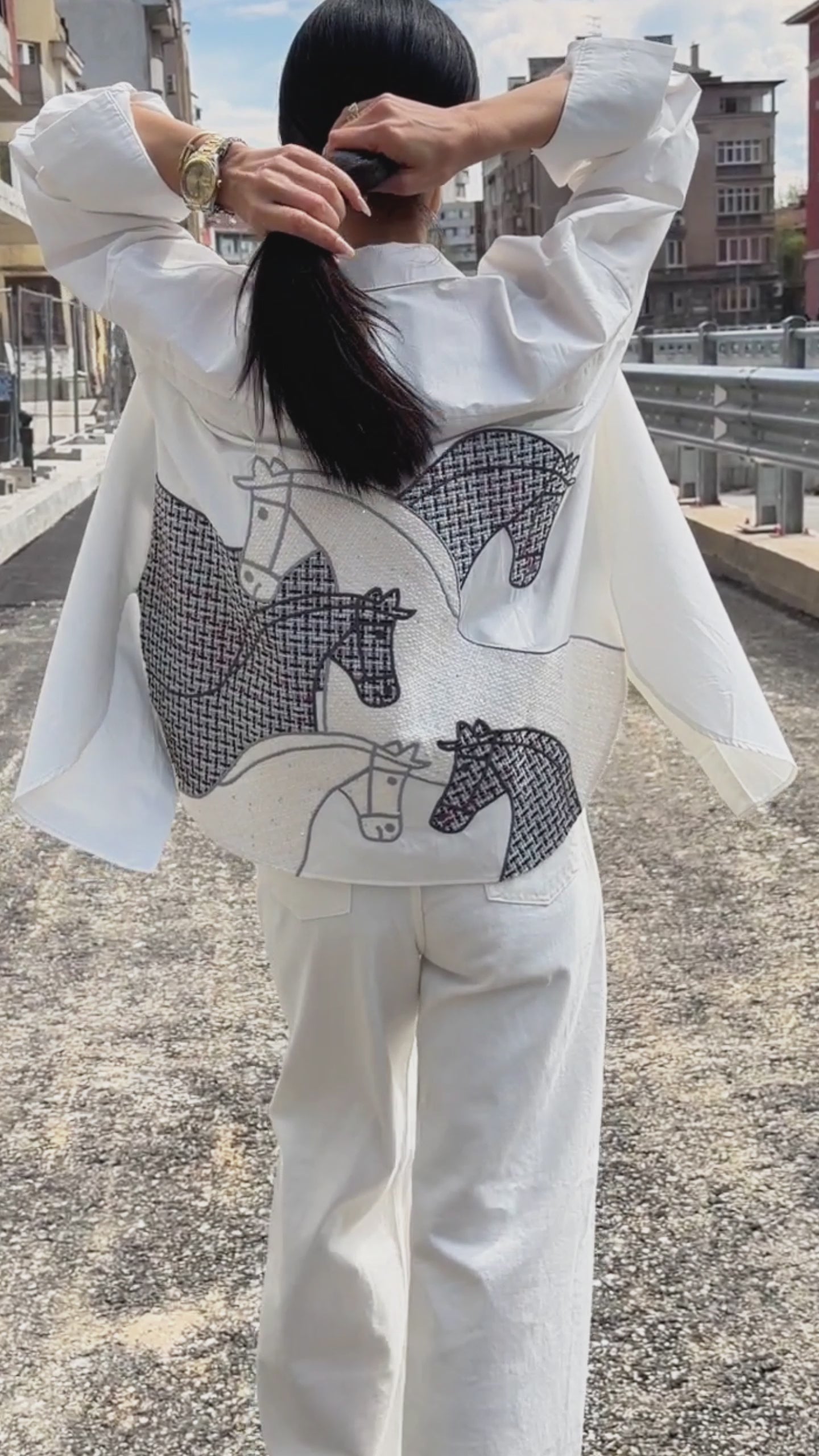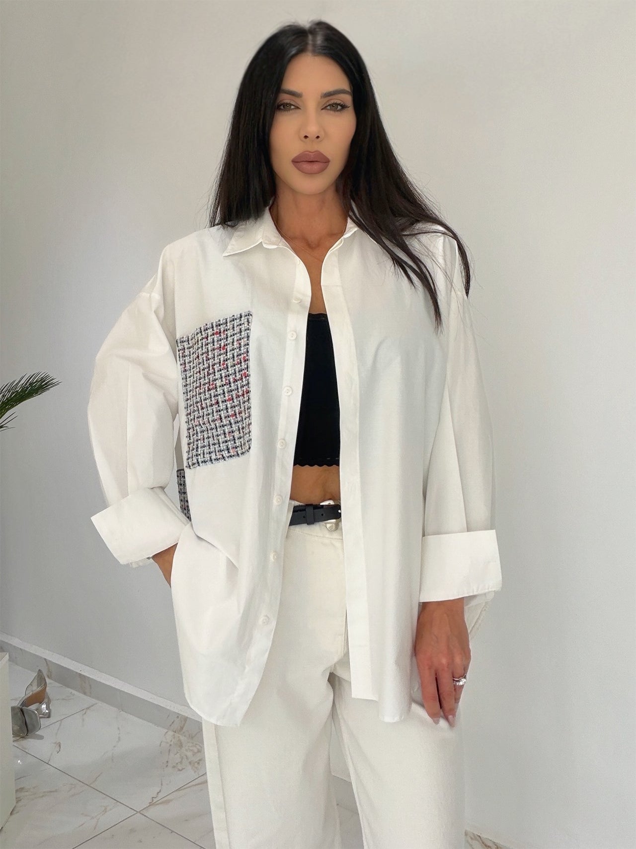 Моделът е с ръст 170 см и позира с размер S.