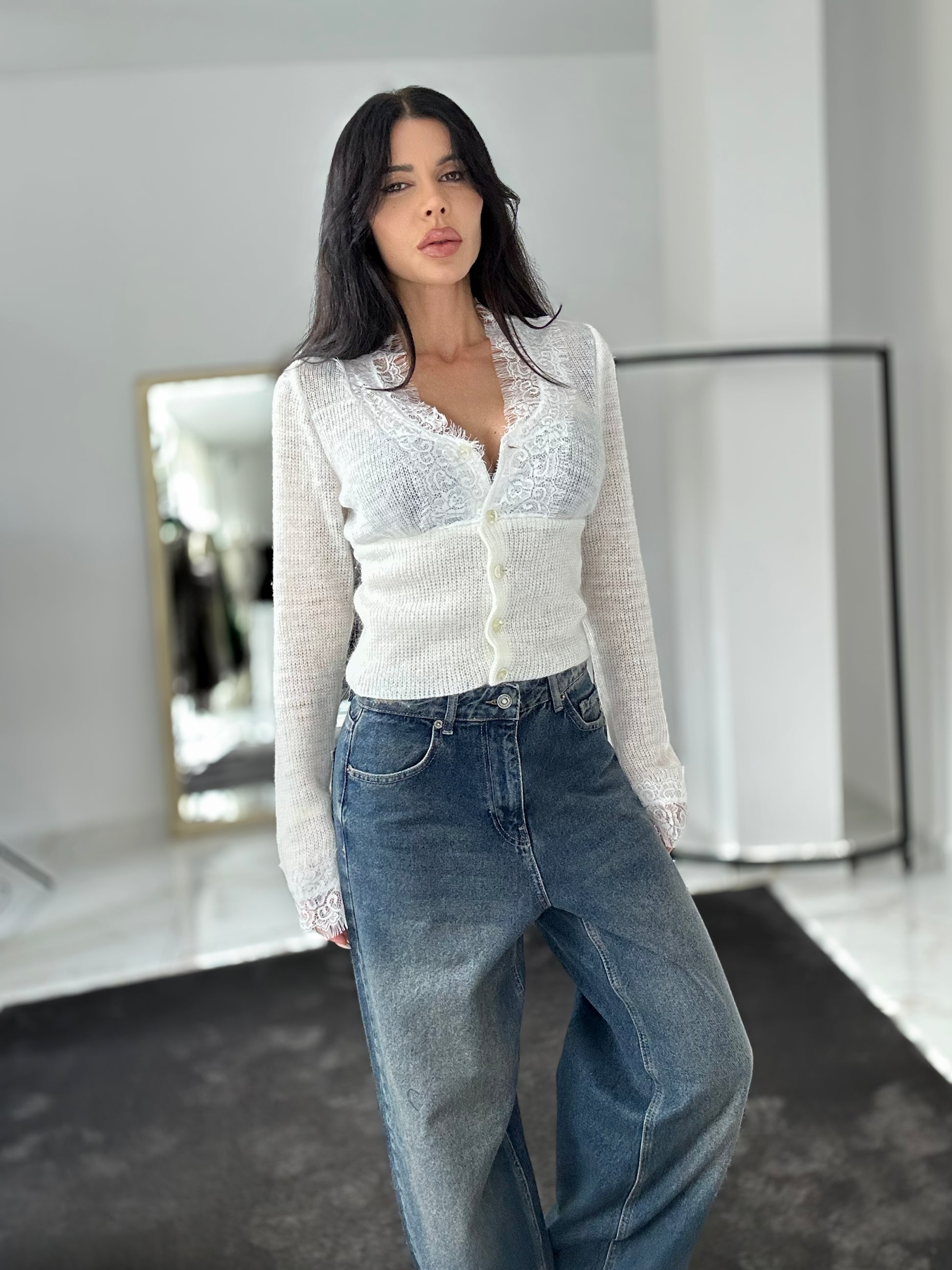 🌫️ Материя: мека плетена нишка с дантелени панели