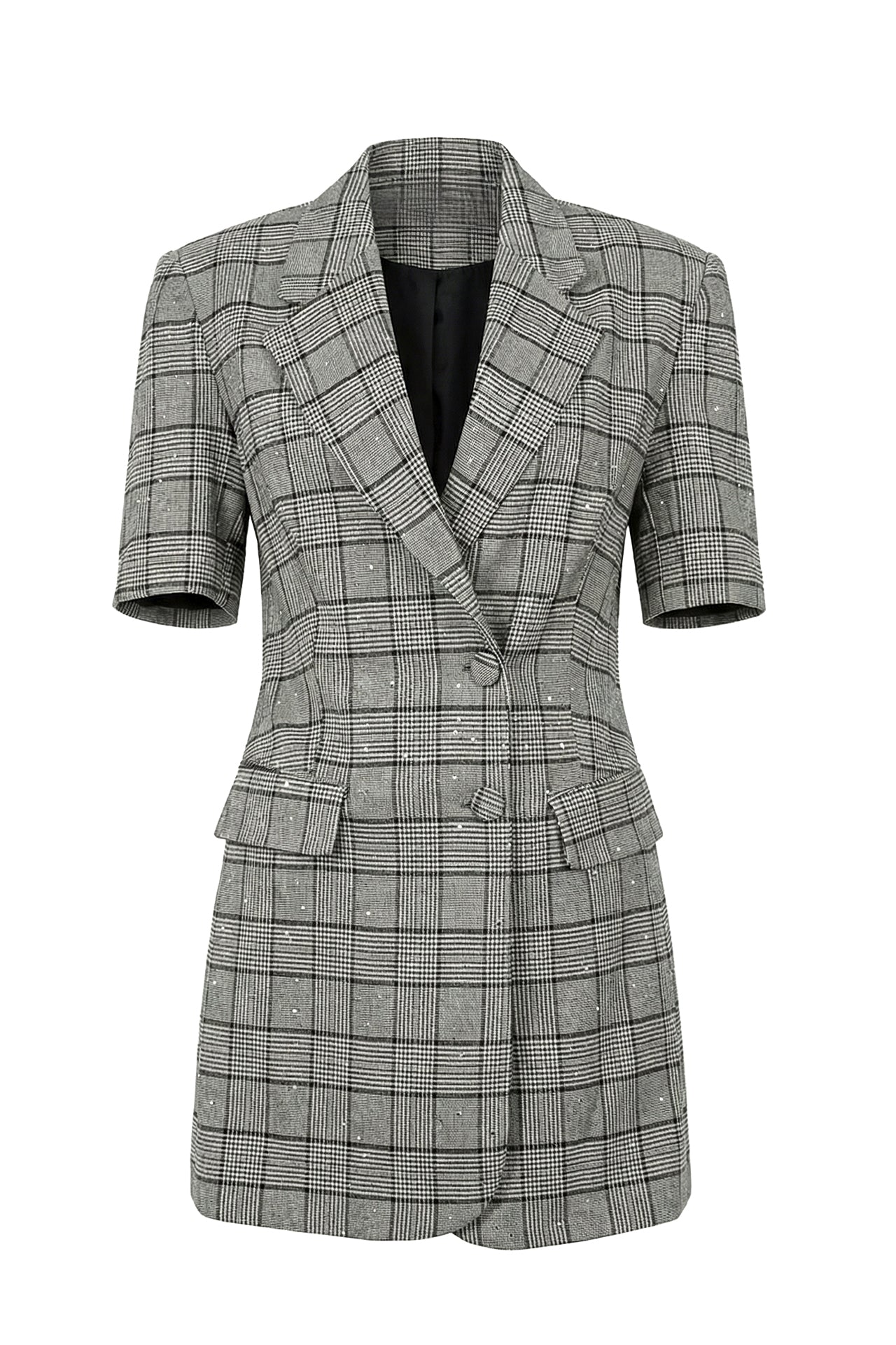 Материя: каре Prince of Wales с фини вплетени мини пайети, които придават деликатен блясък