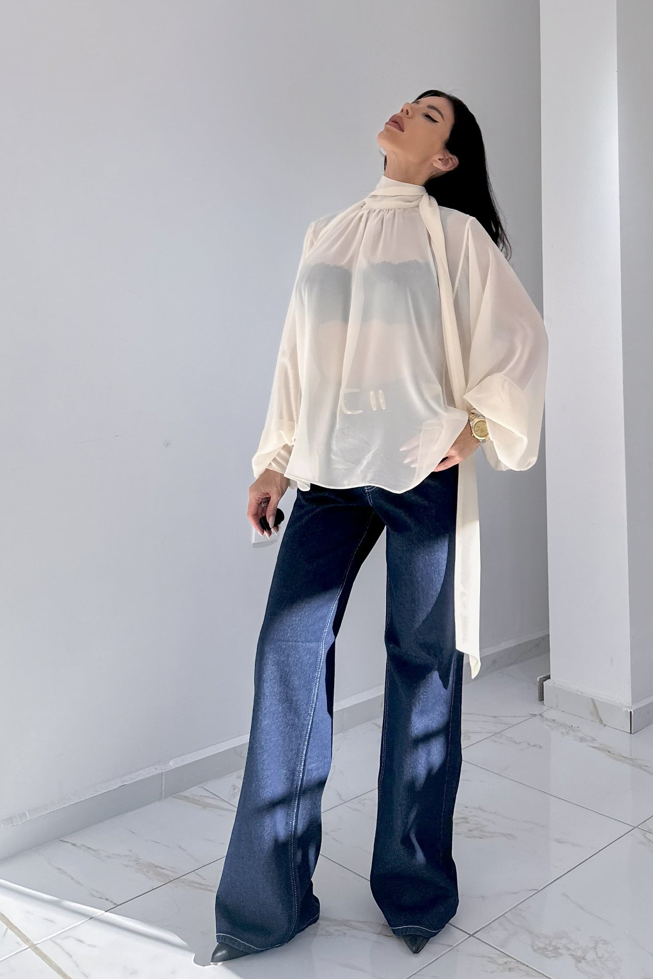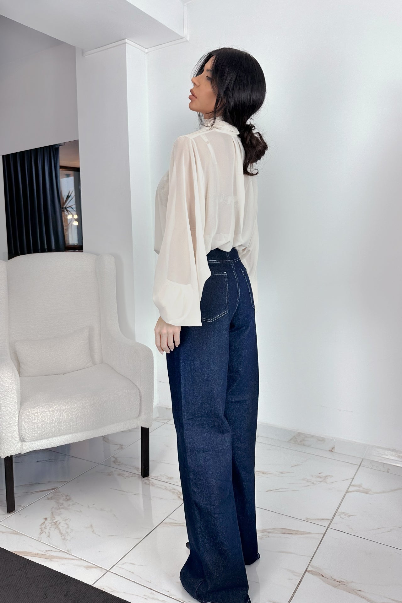 Класически дънки с висока талия и изчистена линия, които подчертават силуета с елегантна женственост. Изработени от плътен деним в индиго цвят. Правият крачол издължава оптически фигурата, а контрастният шев придава модерен, изискан акцент. Перфектният избор за стилна визия както през деня, така и вечер.